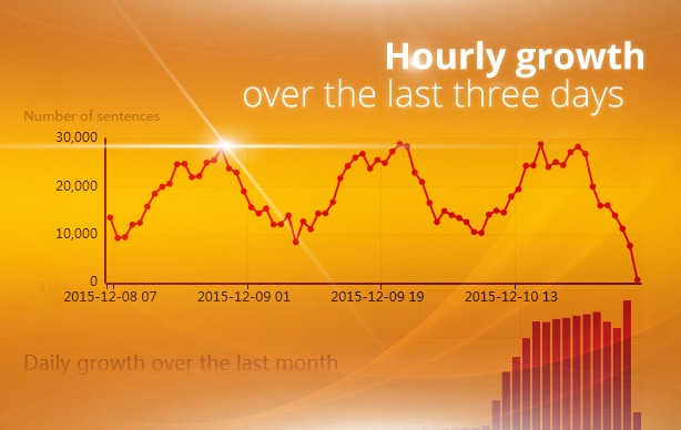 We started monitoring a selection of English language news websites in late September 2015. Currently, the index of Monco grows by approximately 8 million words every day. The list of monitored sources is regularly extended, which means that the rate at which it grows is likely to increase over time. Even though Monco’s index is not balanced in the way most reference corpora are, we believe it can be very useful in finding evidence of new developments in global English. By design, we always try to present one-sentence concordance contexts with direct links to the original web pages. We also provide basic mechanisms of dealing with duplicates, which tend to be a problem in web-based corpora.